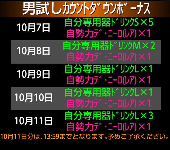 今日から、「男試しカウントダウンボーナス」が